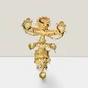 Rising from the elephant’s back is a human figure with outstretched arms, gracefully supporting a circular tray-like structure. This upper tier features small cups or containers, designed to function as oil lamps, making the sculpture not just a decorative artifact but also a ceremonial lamp. The trays are intricately embellished with rope-like and scalloped patterns, adding to the piece's ornate appeal.