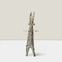 Standing tall and proud, the horse figurine is designed with a long, slender neck and crowned by pointed ears and two unique, elongated prongs, lending it an air of regal elegance. The decorative bridle and carefully etched facial details add refinement and character, giving this figure an expressive, lifelike appearance.
